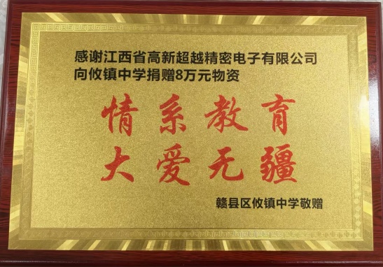 2025年10月荣获赣县区攸镇中学“情系教育,大爱无疆”荣誉牌(高新超越)